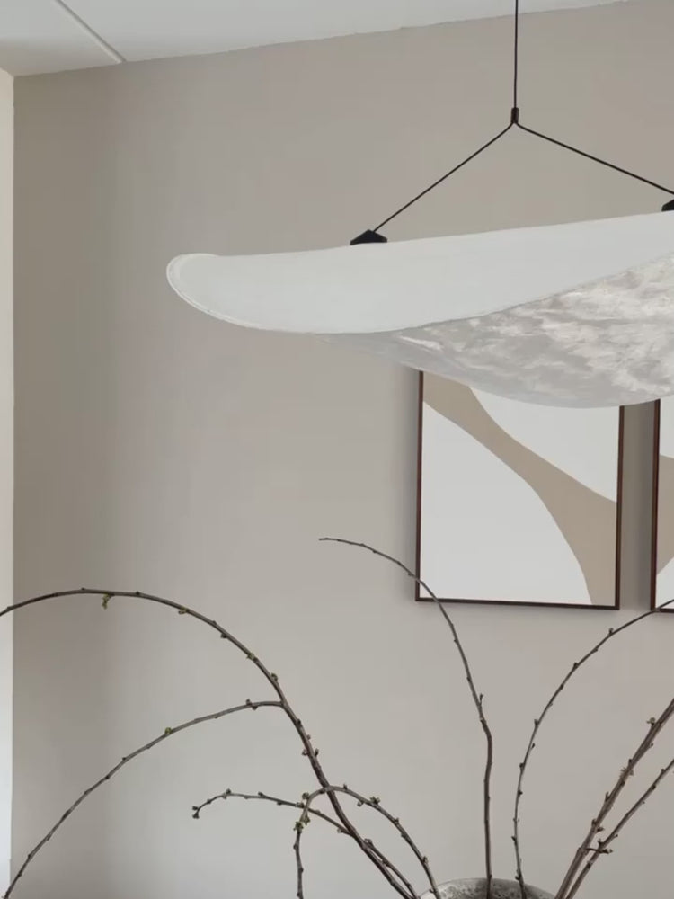 Hast du viel Platz oder hohe Decken? Dann setze ein Statement mit auffälligen Hängelampen. So wird dein Esstisch im Handumdrehen zum strahlenden Mittelpunkt deines Zuhauses. Designlampen Wabi Sabi Ø60 cm und Ø80 cm. (delampfabriek.nl)
